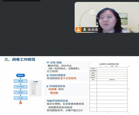 以线上形式召开第二次考务工作会议,全体教师线上参会。公共数学中心副主任朱本喜在前期整体部署基础上,重点就考试实施及后续工作各环节开展精细化指导,内容涵盖监考巡考职责与流程、阅卷规范与质量把控、成绩录入的准确性与时效性、平时成绩评定依据与方法,以及学生成绩复查申请与处理程序等,确保全体教师清晰掌握各环节要求,精准落实工作任务。